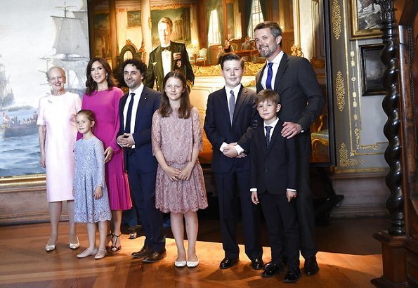 | In connection with the Crown Prince’s 50th birthday, Queen Margrethe, Crown Prince Frederik, Crown Princess Mary, Princess Isabella, Prince Christian, Prince Vincent and Princess Josephine attended the unveiling of a new portrait of the Crown Prince. The portrait unveiling ceremony took place at The Museum of National History at Frederiksborg Palace. The new portrait will be the centrepiece of "Portraits" exhibition consisting of the portraits of the Australian artist Ralph Heimans. |
